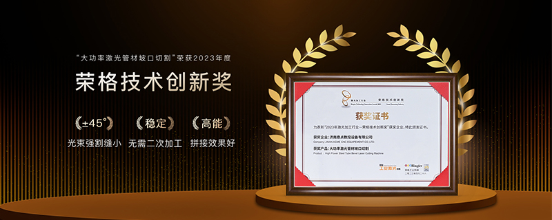 經過專業(yè)評審,嚴格評選,我司“大功率激光管材坡口切割”榮獲2023激光加工行業(yè)-榮格技術創(chuàng)新獎!
