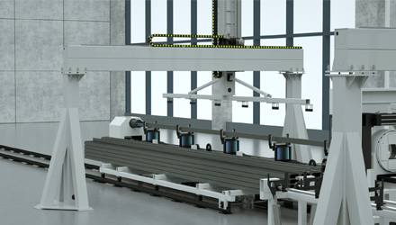 送料小車通過地軌將管材送達料區(qū),機械臂抓取工件到隨動裝置它的單組托舉力300公斤,可托舉邊長260mm以內(nèi)工件完成切割后,磁鐵起吊將工件吊至翻料機構(gòu)自動化翻面起吊能力設(shè)定為300kg,可吸附面寬度≥80mm機械臂自動碼料,小車沿鐵送往工件吊裝區(qū)域。